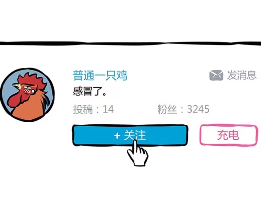 此东说念主头像是一只大公鸡,连网名齐叫鄙俚一只鸡,个性签名齐写着伤风了。投稿作品数还只须14个,不外粉丝也曾有三千多东说念主。九月看到这些细节,似乎倏得脑补出某个东说念主。