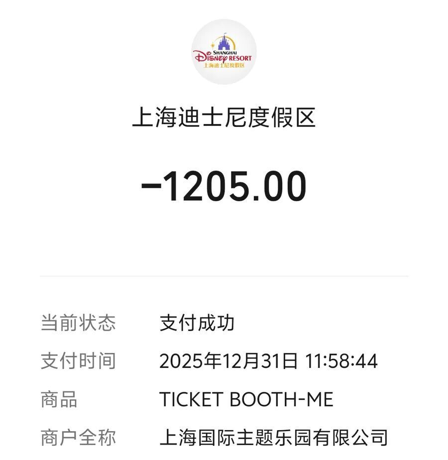 套餐居品无法用来购票后,他在迪士尼现场官方窗口支付1205元购票入场。