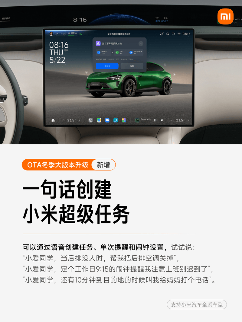 新增一句话创建小米超等任务,可通过语音创建任务、单次请示和闹钟树立。