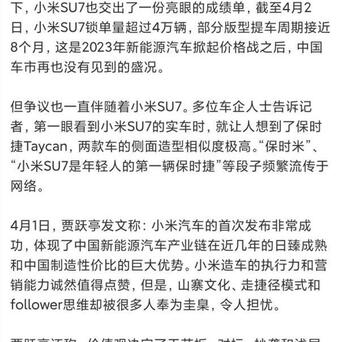 一天一个节律是带的飞起,先是退订率40%,再是职工内购有扣头,咫尺更是平直点名小米SU7是盗窟车,几乎没个消停的技术。