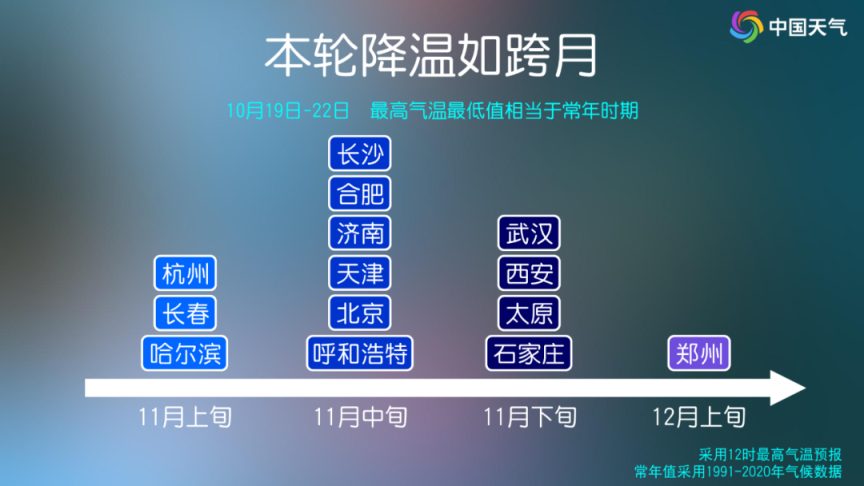 像太原后天最高气温7℃将冲破当地10月中旬最高气温的最低记录(7.8℃)。北京、石家庄、天津光线天最高气温也只消10℃傍边。