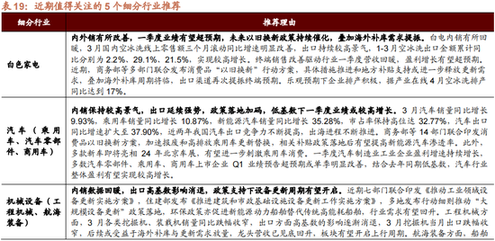 中不雅景气和行业推选:怜惜事迹与产能蔓延拐点出现的领域。受需求收复有限、用度占比提高、以及银行、地产和新能源等权重板块的遭殃影响,一季度上市公司事迹收复仍有辗转,细分领域较为分化。国际营收占收入的比重无间提高,同期在产能蔓延增速放缓的布景下,上市企业股息率和股利支付率均有提高。大类行业中,年报和一季报事迹增速相对较高的主如果公用事迹、消费服务、信息期间。趋势上来看资源品、医疗保健、信息期间事迹旯旮改善。短期推选怜惜事迹增速较高或旯旮改善的领域,主要集合在:1)消费/出行关连行业(货仓餐饮、旅游景区、航空机场、饮料乳品、幽闲食物等);2)出口关连行业(专用开辟、帆海装备、商用车、自动化开辟、汽车零部件、白电、小家电、纺织制造等);3)部分资源品如基础化工、石油石化、以及工业金属、贵金属等;4)部分TMT板块(消费电子、半导体、通讯开辟、诡计机开辟)等。中耐久结合产能蔓延情况,推选怜惜此前产能蔓延有限,盈利出现拐点的资源品、信息期间、医疗保健,以及中游制造业产能去化尾声的到来和盈利拐点的出现。