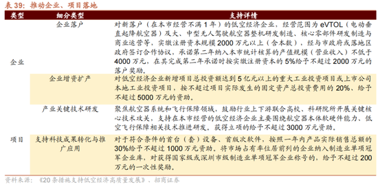 在推动企业、形貌落地上,主要有4种类型的支柱政策:1)推动企业落户、2)推动企业增资扩产、3)推动关键期间研发、4)推动恶果转动、5)推动适航取证。以深圳、广州的支柱政策为例,这一类型的政策一般给以一次性赔偿,每种类别的补助金额在百万到千万不等。