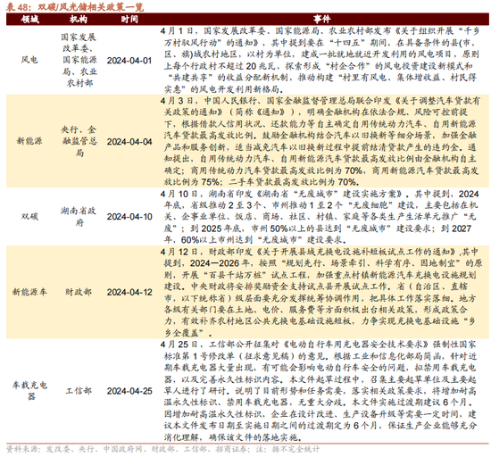 双碳/快意储方面,4月1日,国度发展更始委、国度能源局、农业农村部发布《对于组织开展“千乡万村驭风行径”的报告》,其中提到要在“十四五”期间,在具备条款的县(市、区、旗)域农村地区,以村为单元,建成一批马上就近开发利用的风电形貌,原则上每个行政村不跨越20兆瓦,探索形成“村企合作”的风电投资建设新模式和“共建分享”的收益分派新机制。4月12日,财政部印发《对于开展县域充换电设施补短板试点管事的报告》,其中提到,2024—2026年,按照“有考虑先行、场景牵引、科学有序、因地制宜”的原则,开展“百县千站万桩”试点工程,加强要点村镇新能源汽车充换电设施有考虑建设。中央财政将安排奖励资金支柱试点县开展试点管事。4月25日,工信部公开搜集对《电动自行车用充电器安全期间要求》强制性国度尺度第1号修改单(征求倡导稿)的倡导。凭证工业和信息化部局简函,针对近期车载充电器大都出现,有可能会影响电动自行车安全的问题,拟禁用车载充电器,以及完善永久性符号内容。