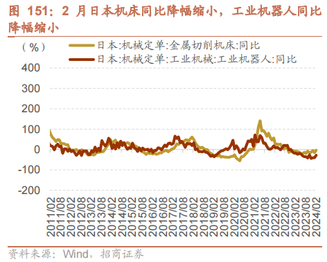 另外,2月日本切削机床订单同比降幅由前一月的-16.11%收窄至-3.35%,工业机器东说念主订单同比降幅由前一月的-40.40%收窄至-27.99%。
