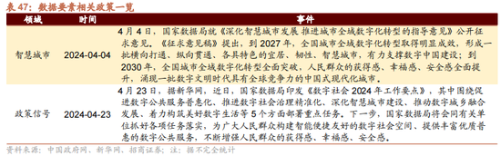 数据要素方面,4月4日,国度数据局就《深化智谋城市发展 鼓动城市全域数字化转型的指挥倡导》公开征求倡导。《征求倡导稿》忽视,到2027年,寰宇城市全域数字化转型取得显豁成效,形成一批横向买通、纵向贯通、各具特色的宜居、韧性、智谋城市,有劲相沿数字中国建设;到2030年,寰宇城市全域数字化转型全面破裂,东说念主民大家的获取感、幸福感、安全感全面提高,涌现一批数字精致期间具有全球竞争力的中国式当代化城市。4月23日,据新华网,近日国度数据局印发《数字社会2024年管事要点》,其中围绕促进数字寰球服务普惠化、鼓动数字社会治理精确化、深化智谋城市建设、推动数字城乡交融发展、服从构筑好意思好数字生涯等5个方面部署要点任务。下一步,国度数据局将会同接洽单元抓好各项任务落实,为雄伟东说念主民大家构建智能方便友好的数字社会空间、提供丰富优质普惠的数字寰球服务,不断增强东说念主民大家的获取感、幸福感、安全感。