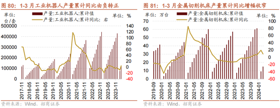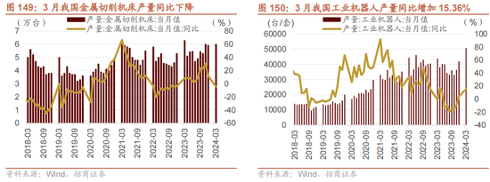 3月我国金属切削机床同比下降,工业机器东说念主产量同比由负转正。3月我国金属切削机床产量为6.00万台,同比降幅为4.50%,较前一月增速回落16.19个百分点;工业机器东说念主产量有所回升,同比增多15.36%,环比增多20.59%。