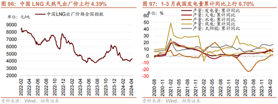 风电新增装机同比增速回落,出口同比由负转正。凭证CEC数据自大,2024年一季度公开招标约23.3GW,同比下降12.1%;3月风机出口金额环比增速增多,上行至33.34%;同比增速由负转正,上行至81.34%。