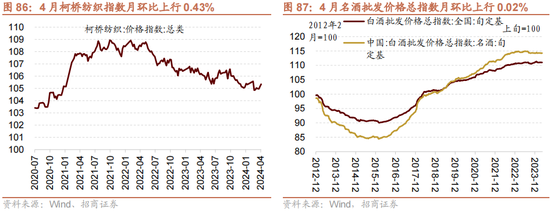 ▶ 白酒: 4月茅五泸高端白酒价钱均值同比有所下降,3月酒类线上销售额同比增长至13.0%