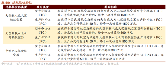 在适航取证补贴上,以广州政策为例,对稳健尺度的适航器以及对于取得坐褥许可的适航器,按照型号大小,一般给以一次性奖励300-1500万元不等。