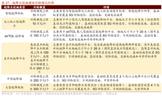 以广州的支柱政策为例,单个平台建设支柱强度在10-300万元/个区间。从数目上看,以安徽省给出的的低空经济发展办法为例,到2027年,单个省市约需要建设500个傍边的起降点/时局。