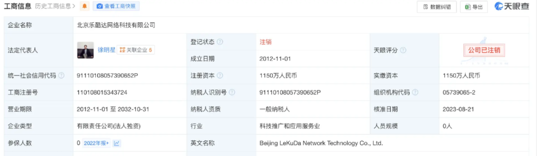 天眼查数据自大,2023年10月25日,Okcoin前运营主体北京乐酷达辘集科技有限公司依然被刊出,徐明星与欧科云链的关系被进一步切割。然而,徐明星依然握有欧科云链72.71%的股份。