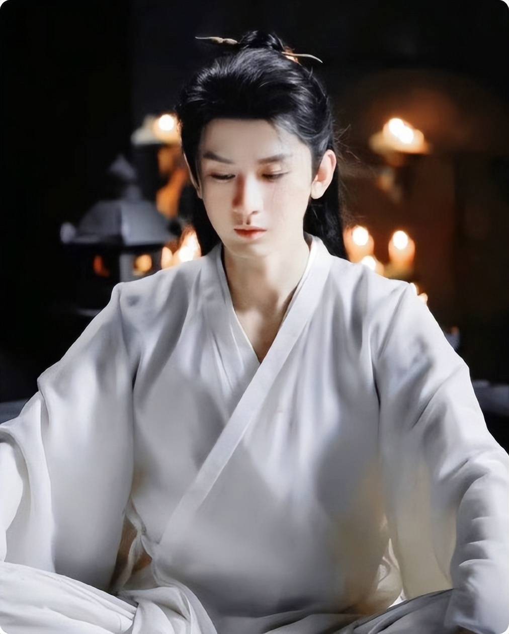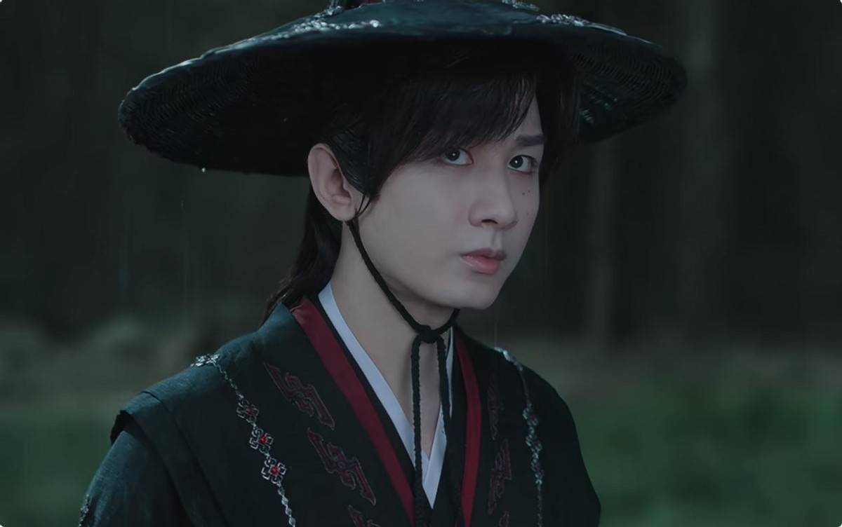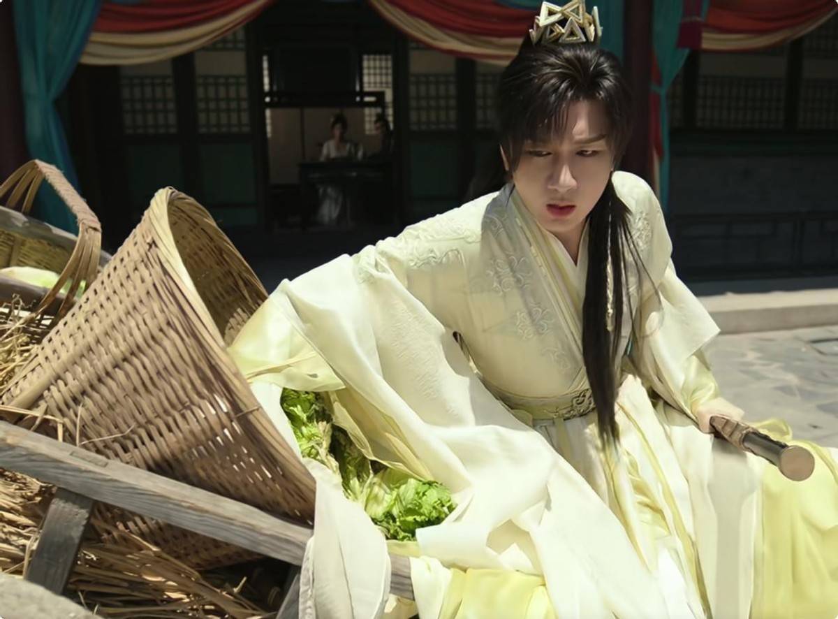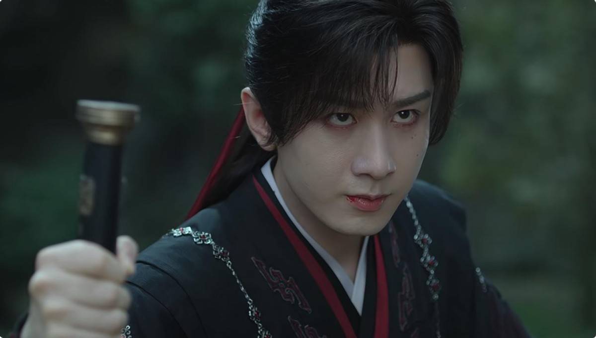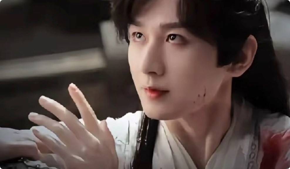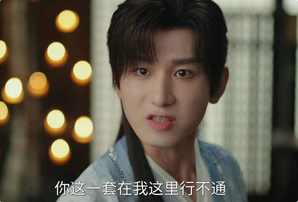 这些外皮造型反倒隆起他的违和感,妆感太刻意、神情过嫩,比起武侠剧更像是男主自嬷的古偶。