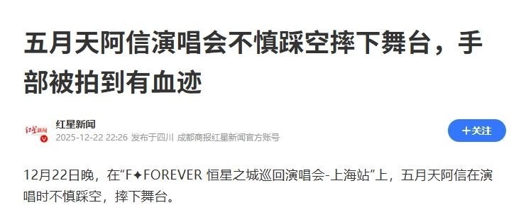 由于舞台动作过于参预,阿信在扮演经过中失慎踩空颠仆,手臂马上擦伤出血。