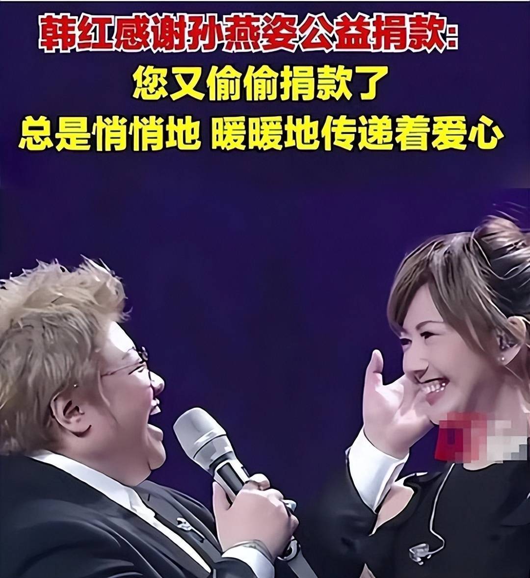 韩红在演唱会上说,有一个“孙女士”匿名捐钱逾越八位数,不肯签字。