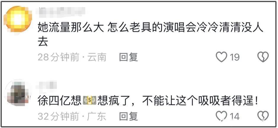网友对此径直叱咤她“吸坏脑子”、“念念钱念念疯了”、“有病就去治”,认为大S这是在妄念念。若是她的流量真是这样大的话,为什么没帮具俊晔把上演的票卖出去呢?大小S上阵宣传皆没能卖完,这会儿认为我方流量大了。